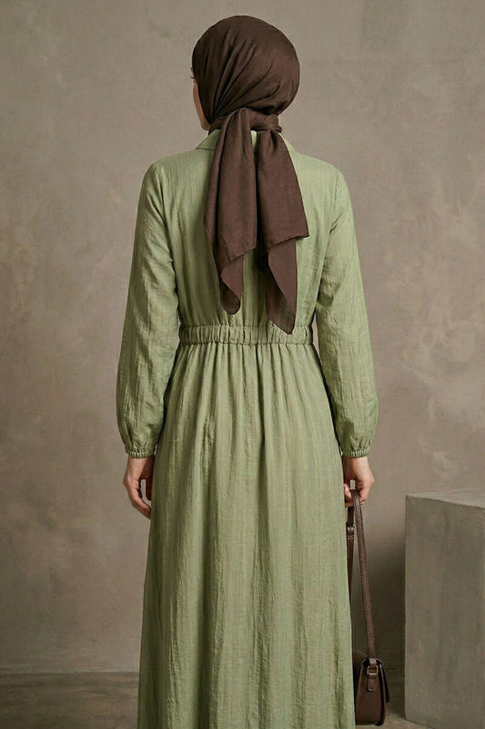 Yaka Fırfırlı Bel Tünelli Elbise cagla yesili