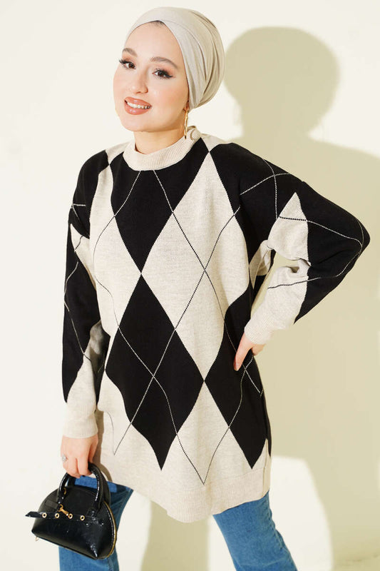 Zigzag Kabartmalı Triko Uzun Hırka vizon