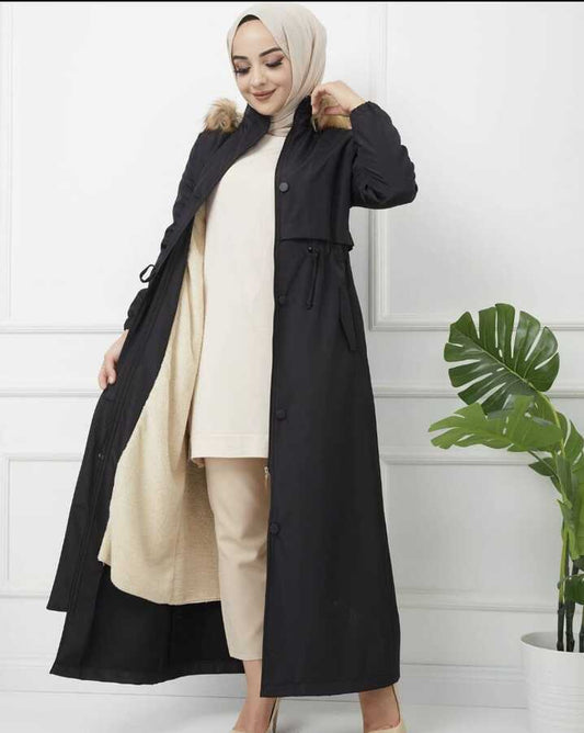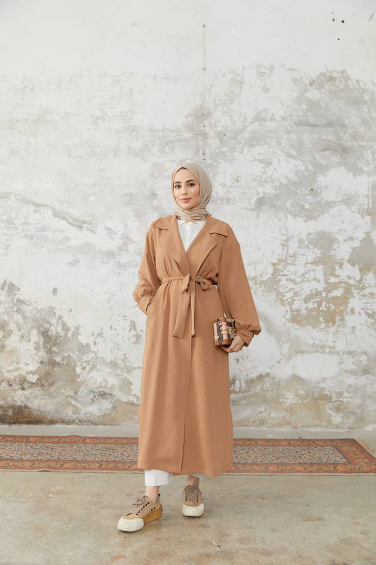 Manteau Hijab Long Ceinturé - Crème