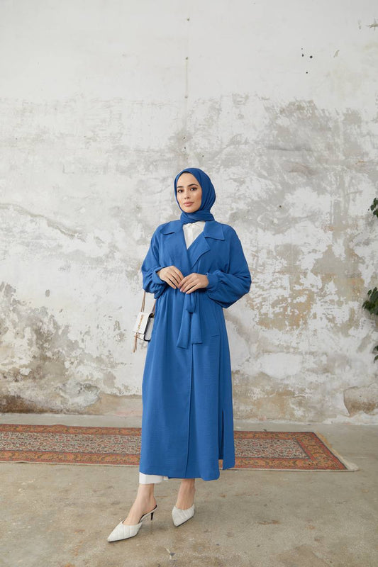 Cape Hijab Longue Ceinturée - Bleu