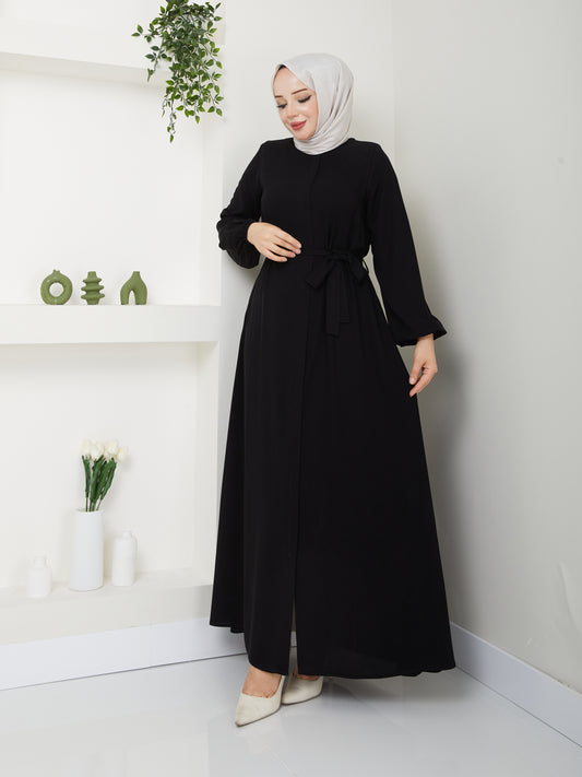 Abaya Hijab décontractée avec ceinture - Noir