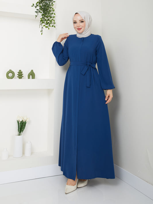Abaya Hijab Décontractée avec Ceinture - Bleu Marine