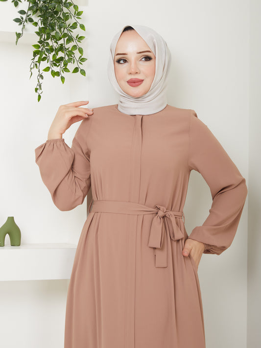 Abaya Hijab Décontractée avec Ceinture - Beige