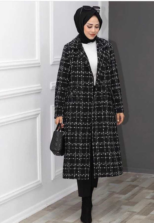 Parka en laine doublée avec carreaux à taille froncée