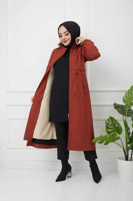 Parka longue à l'intérieur en laine à taille froncée Tan