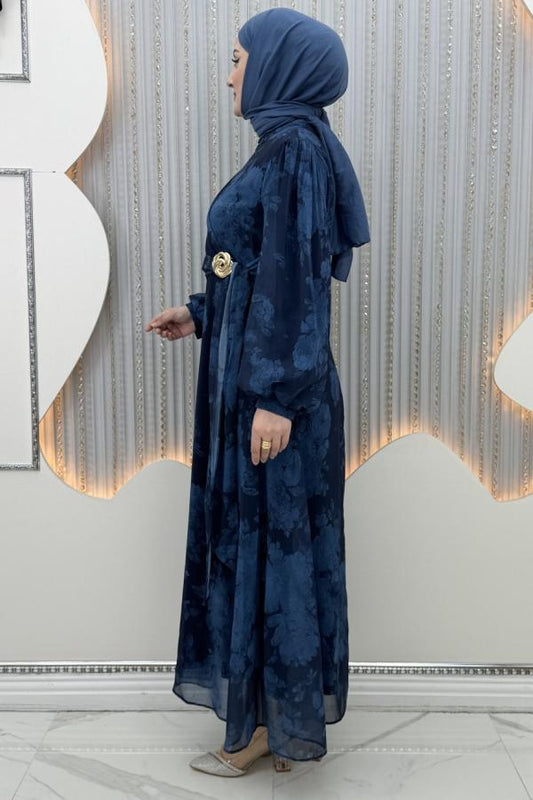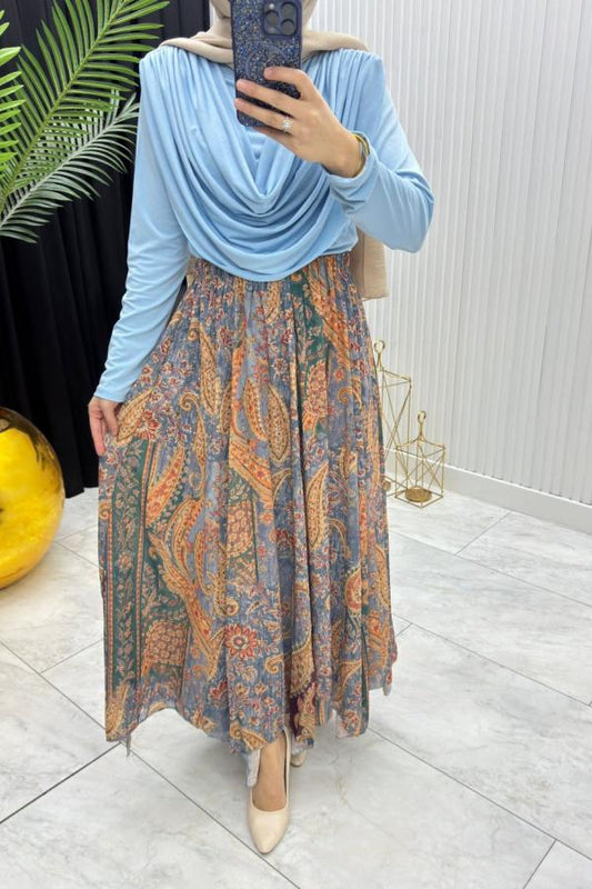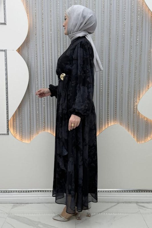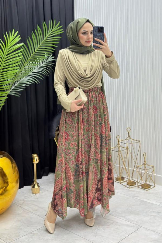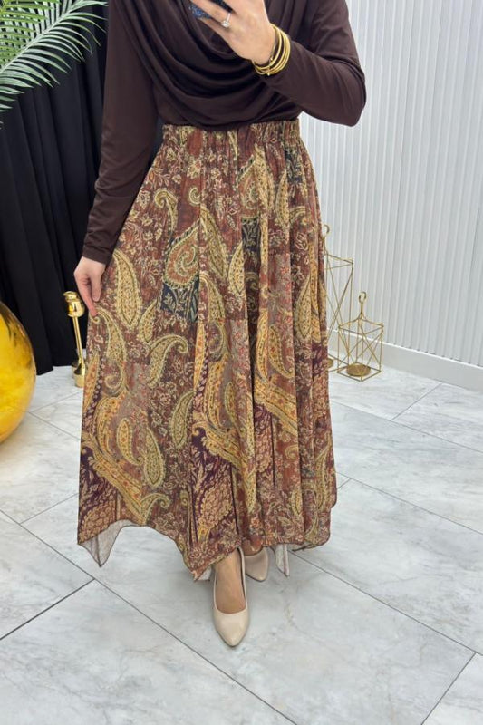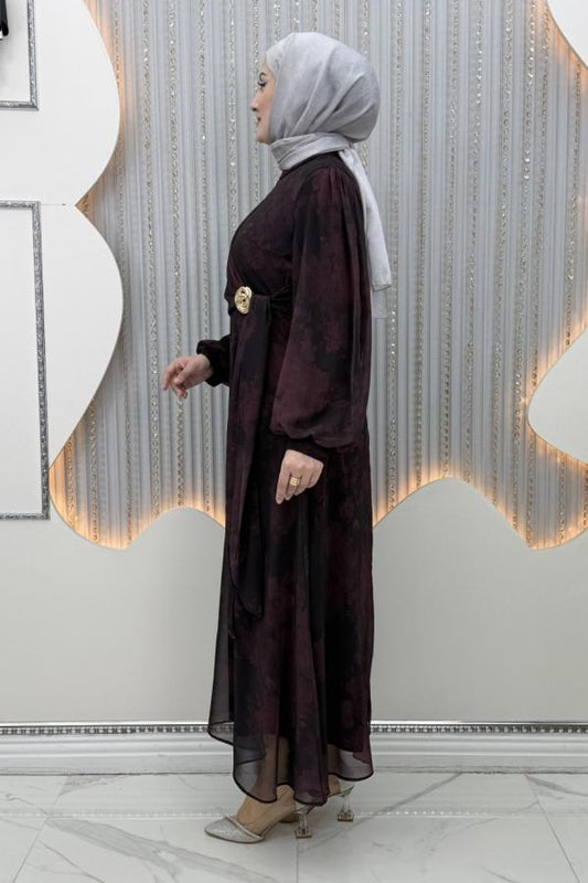 Eteği Pileli Tesettür Ferace - Kahverengi