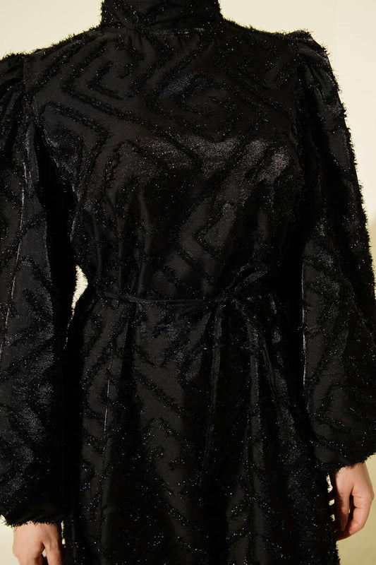 Balon Kol Sim Sakallı Abiye Elbise siyah