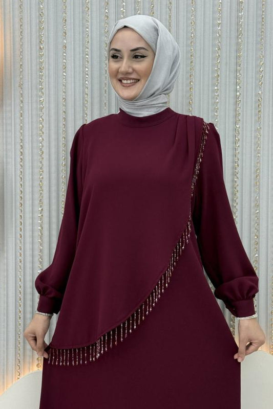 İndirimTaş işlemeli Abiye vişne