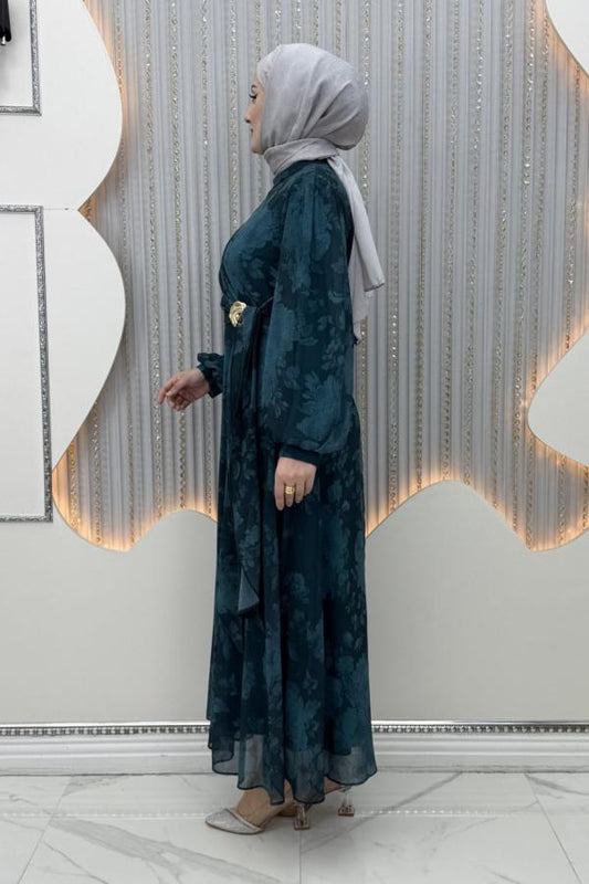 Kendinden Kuşaklı Pileli Takım Zümrüt yeşili
