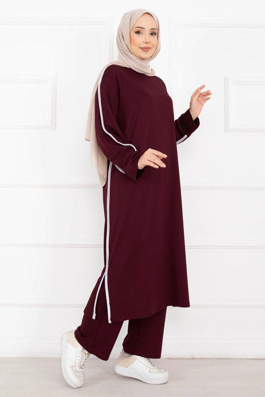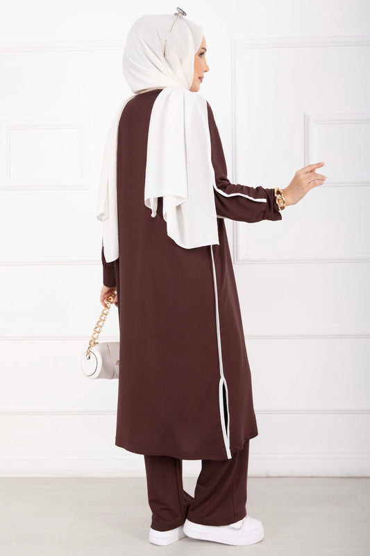Etnik Desenli Scuba Etekli İkili Takım kahverengi