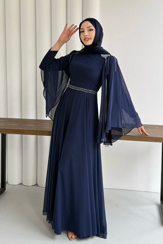 İndirimKemerli Ferace lacivert