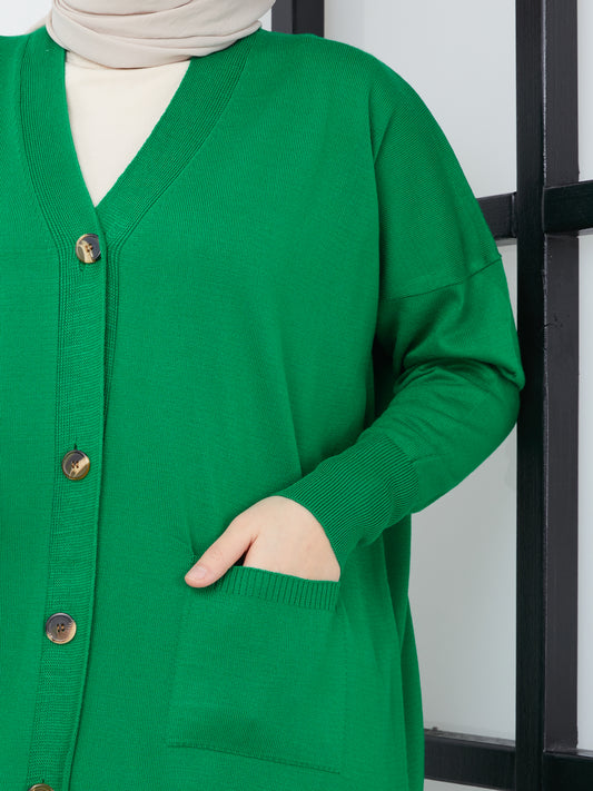 Cepli Uzun Tesettür Triko Hırka - Yeşil