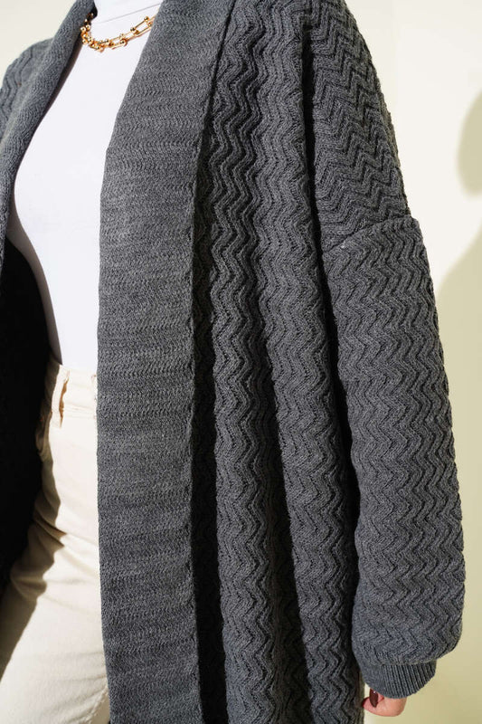 Zigzag Kabartmalı Triko Uzun Hırka gri