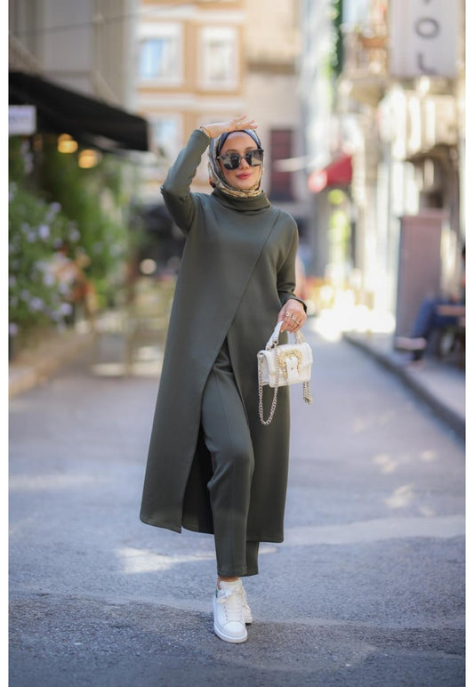 Boğazlı Tunik Pantolon Takım Haki