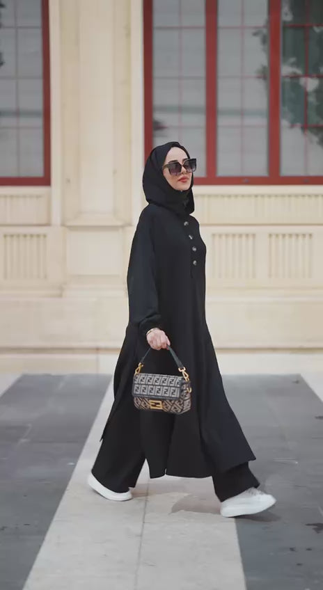 Boğazlı Tunik Pantolon Takım siyah