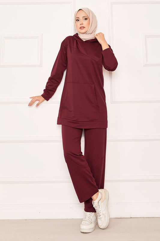 Önü Asimetrik ,Kadife Takım Mürdüm