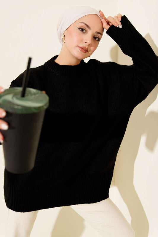 Riban Görünümlü Triko Tunik siyah