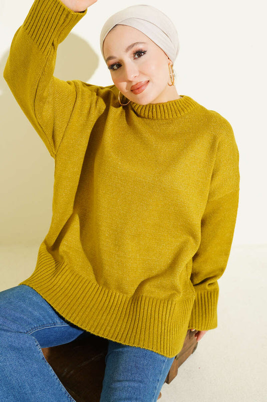 Riban Görünümlü Triko Tunik yağ yeşili