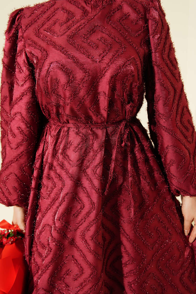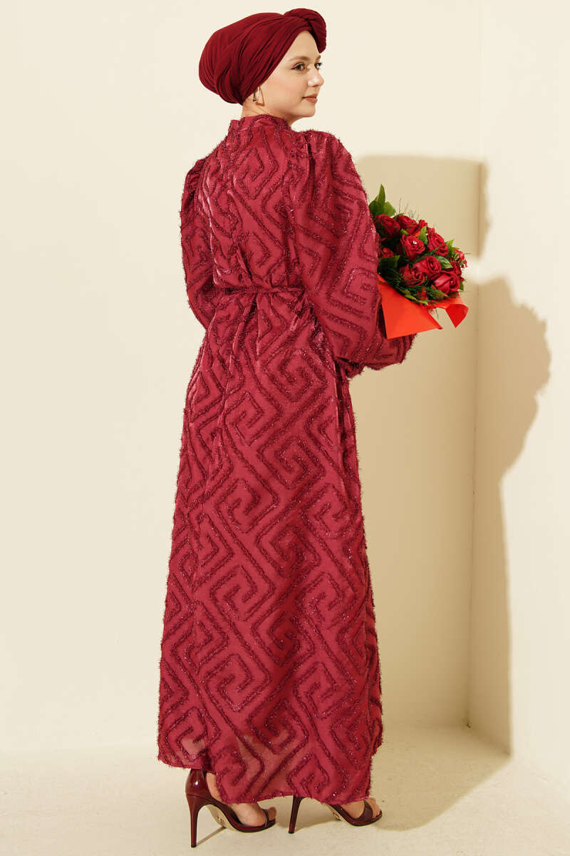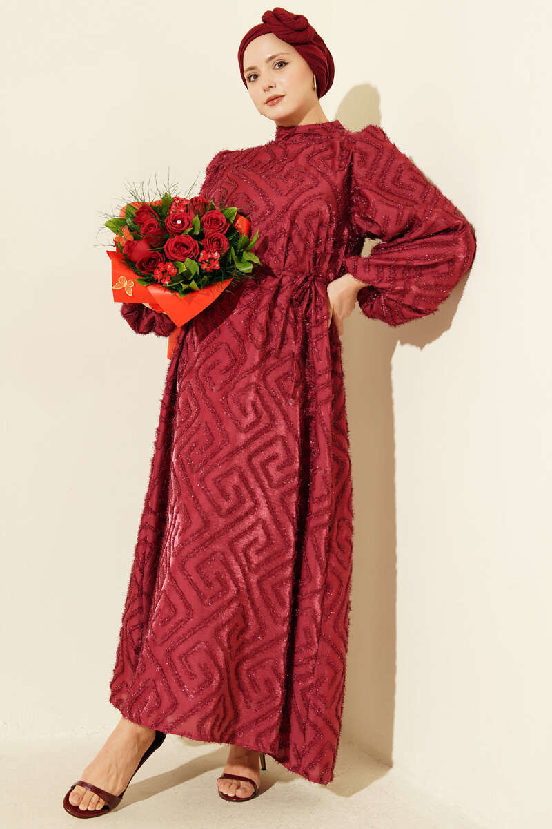 Balon Kol Sim Sakallı Abiye Elbise bordo