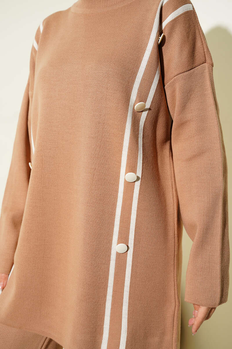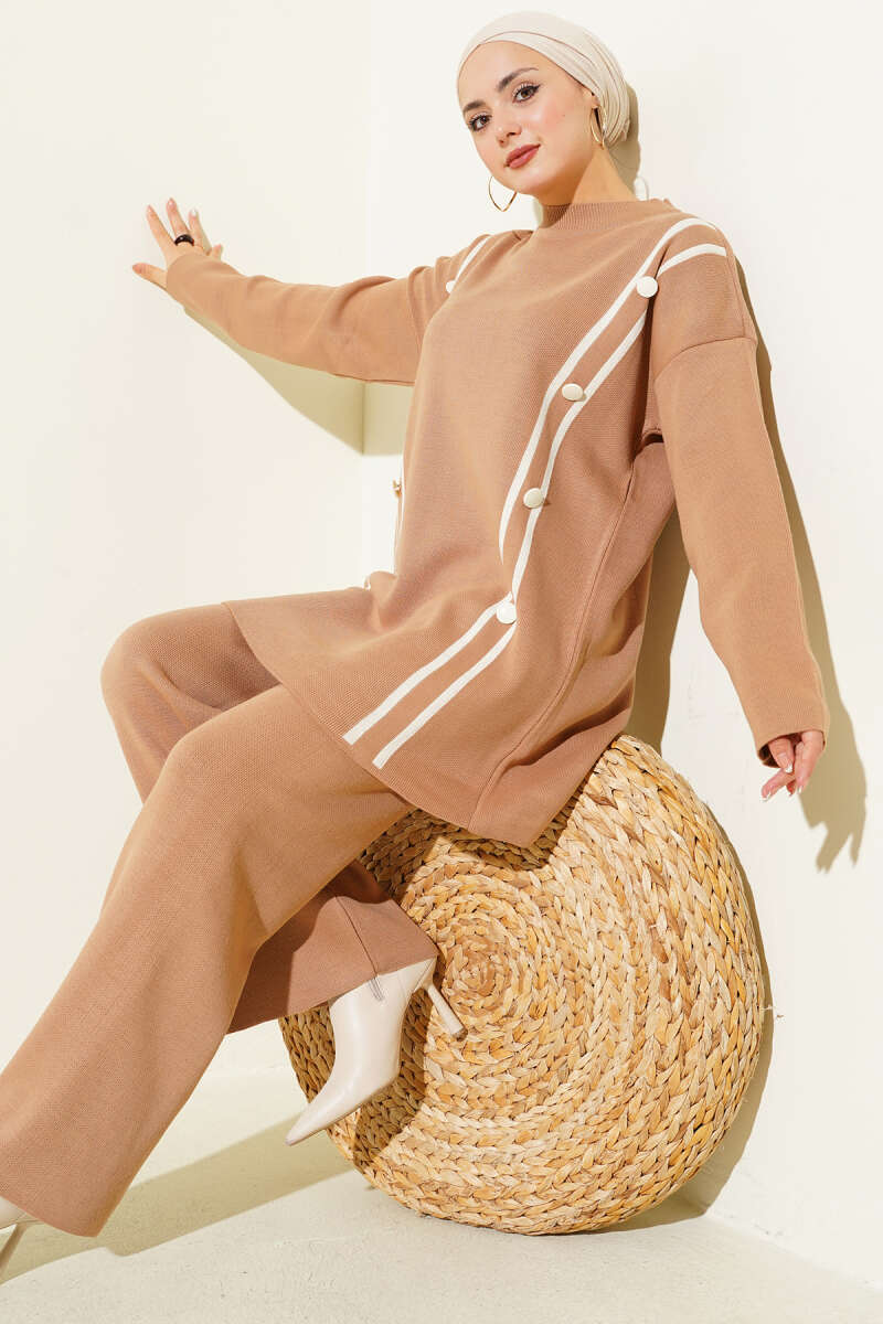 Düğmeli Triko İkili Takım bej