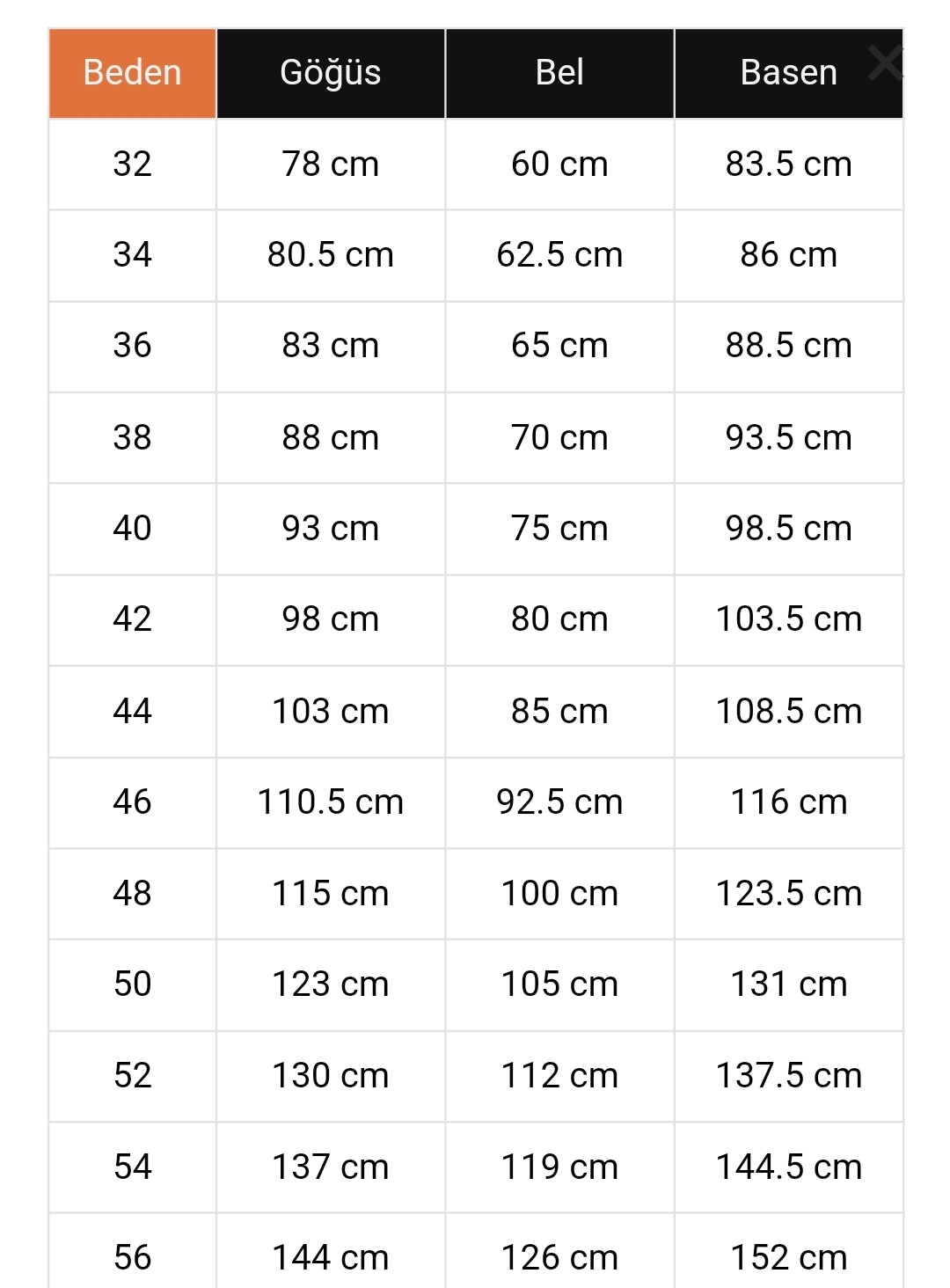 Beden tablosunu dikkate alarak ölçülerinize uygun bedeni sipariş verebilirsiniz .
