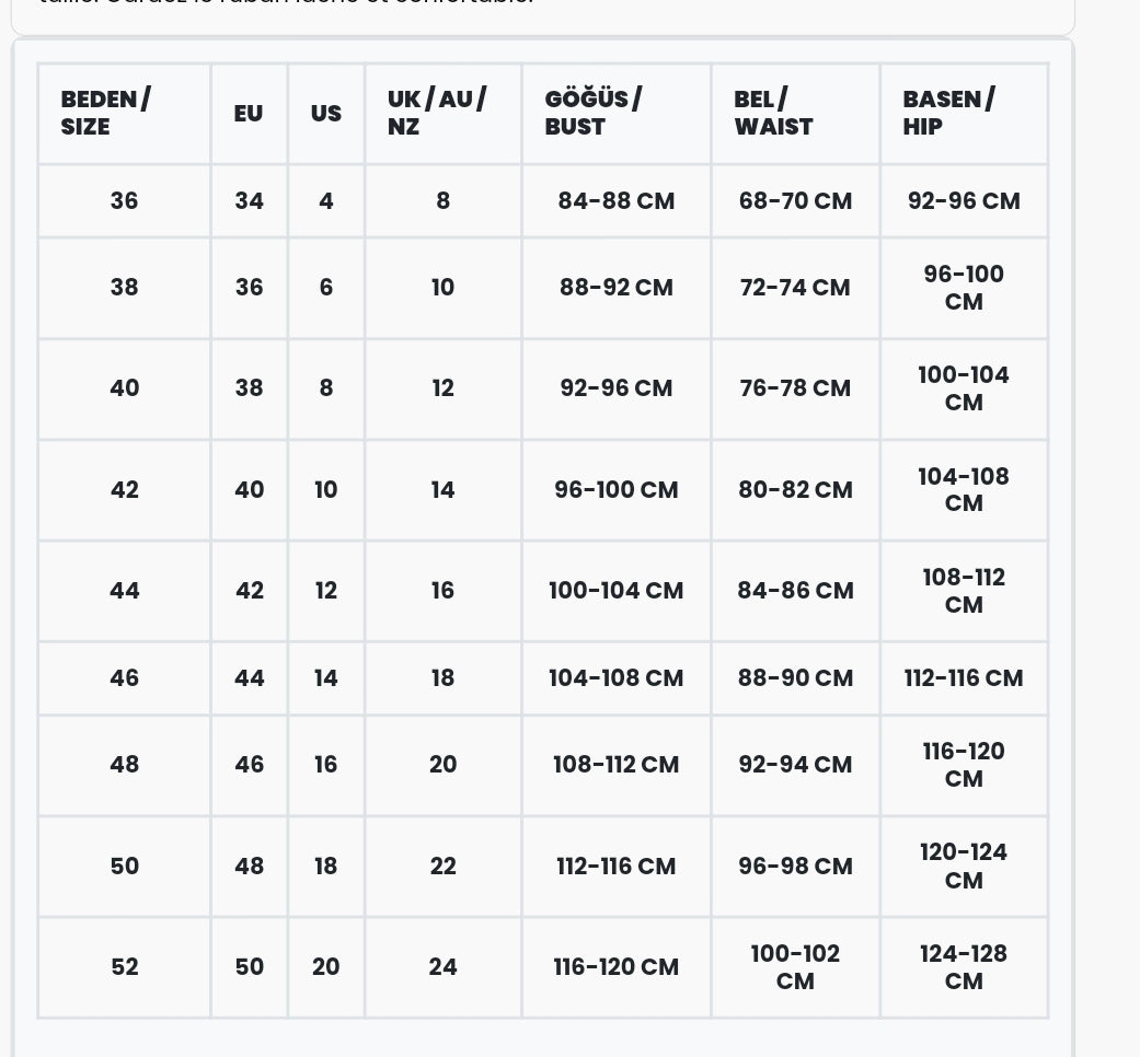 ürün tam kalıp olup bedeninizi tercih edebilirsiniz.