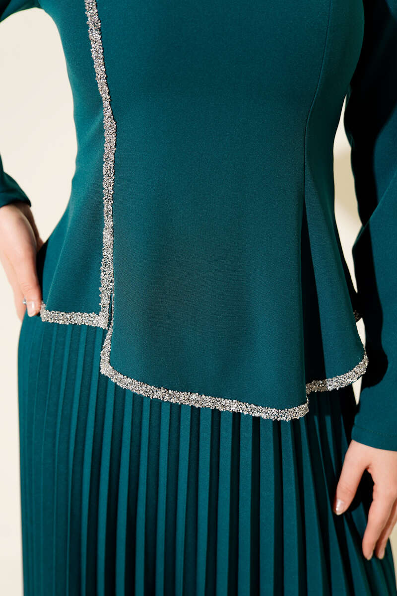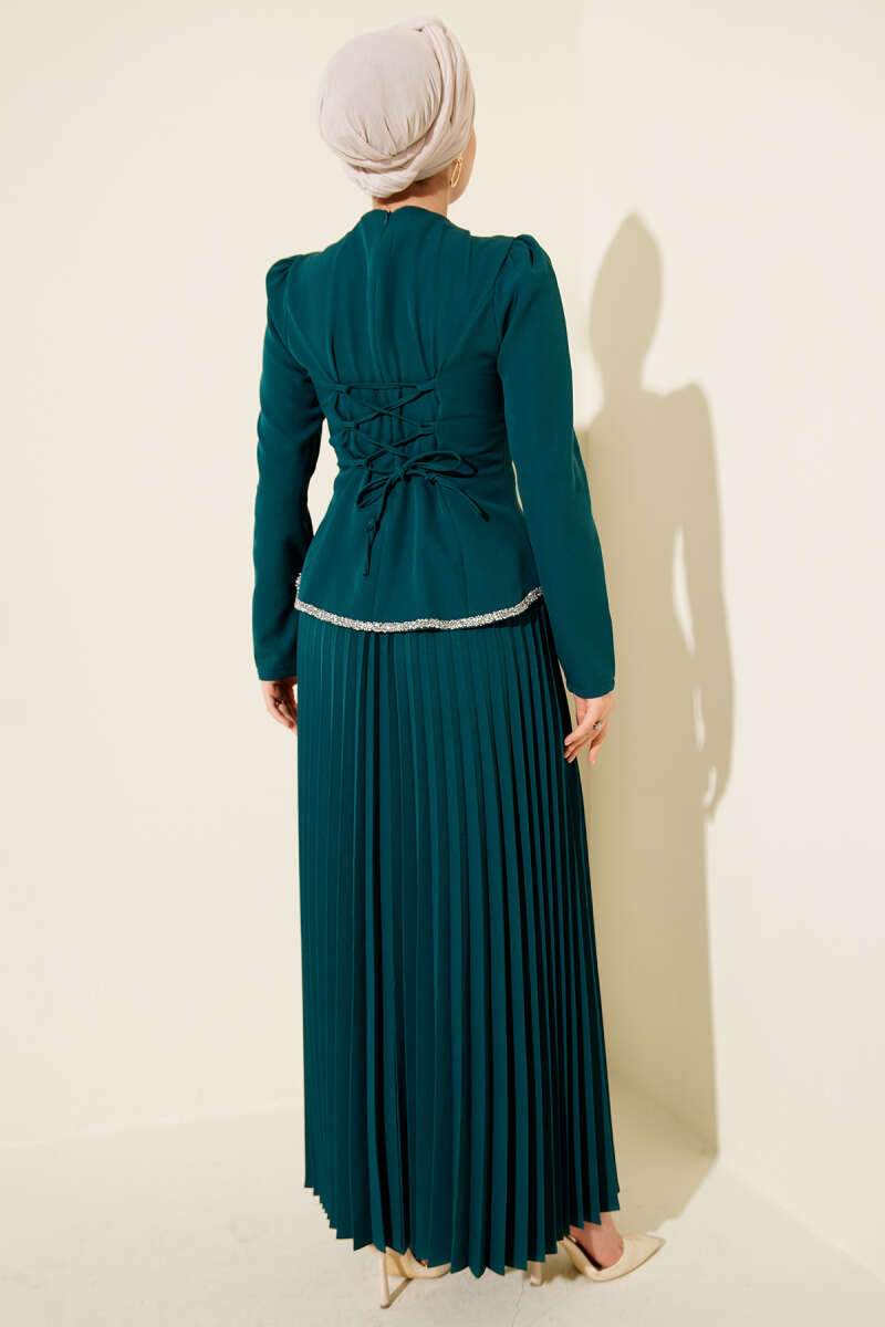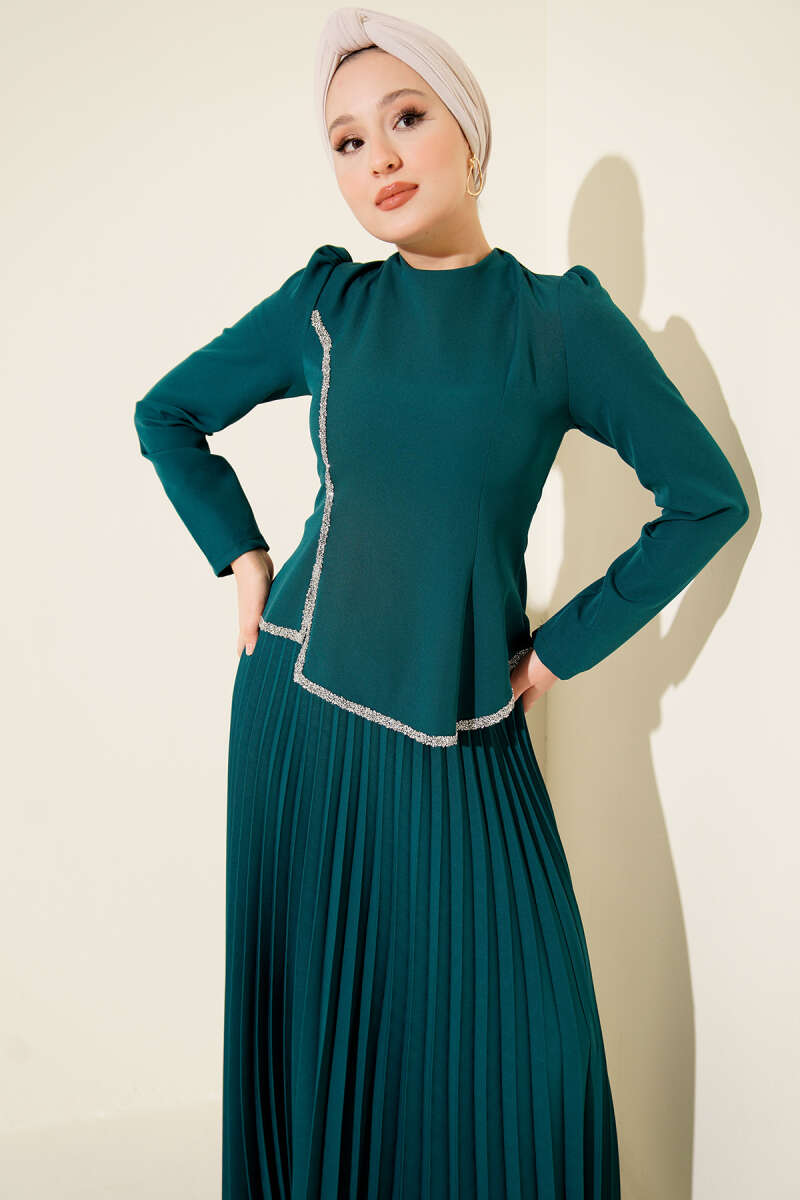 Zweiteiliges Set mit Stein-Details und Falten in Smaragdgrün