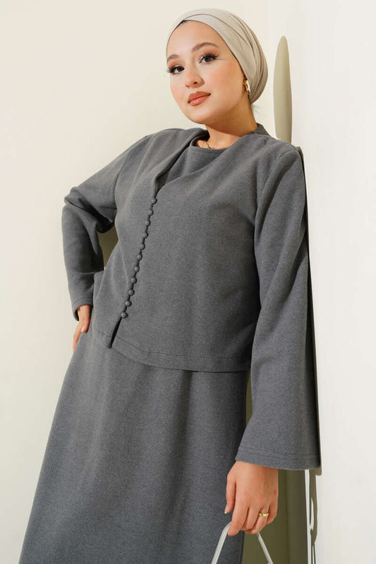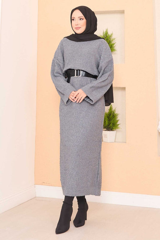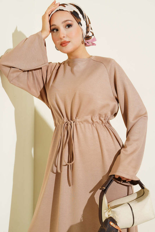 Two-Piece Dress Set with Hooded Sweater Detail mink