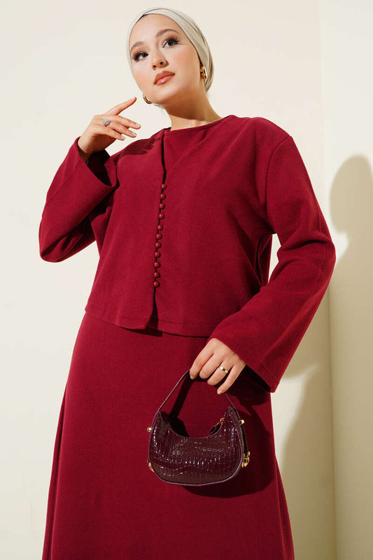 Pıtırcık Dokulu Oversize Elbise Kahve