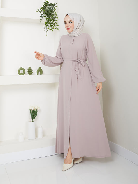 Nakışlı İnci Detaylı Ferace gül kurusu