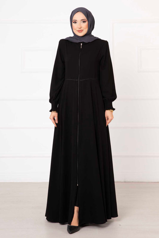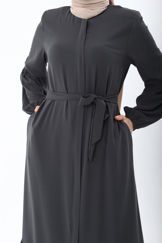 Eteği Pileli Tesettür Ferace - Kahverengi