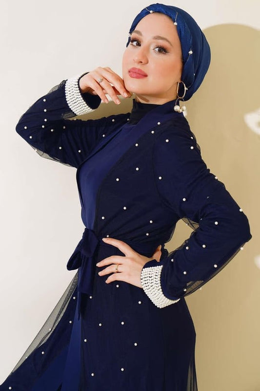 DiscountNakışlı İnci Detaylı Ferace Lacivert