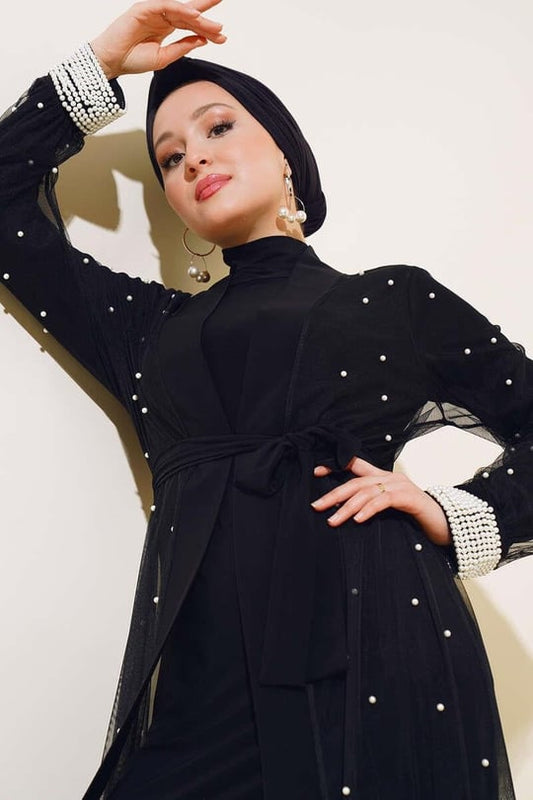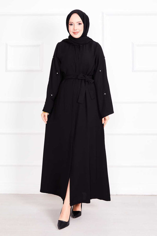 DiscountNakışlı İnci Detaylı Ferace Siyah