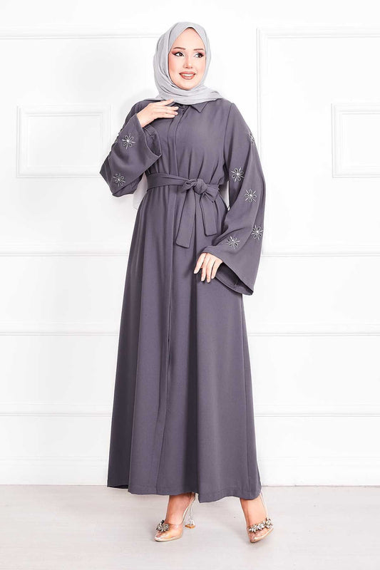 DiscountNakışlı İnci Detaylı Ferace Gri
