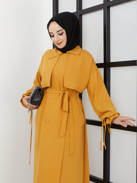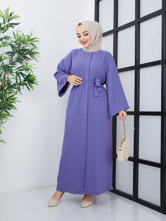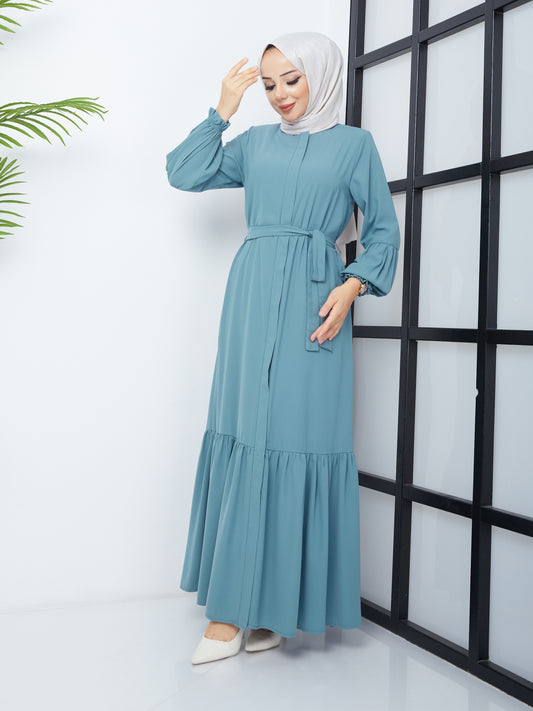 Casual Hijab Abaya with Waist Belt - Petrol blue