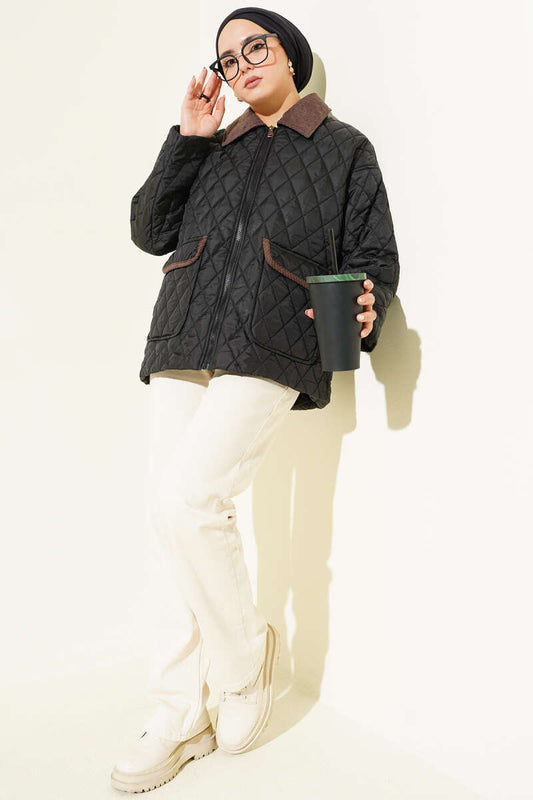 Discountİçi yünlü yağmur kumaş Manto siyah