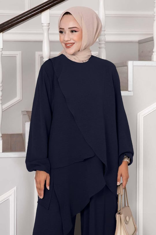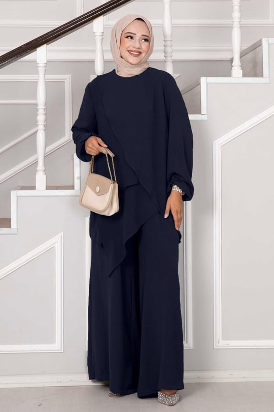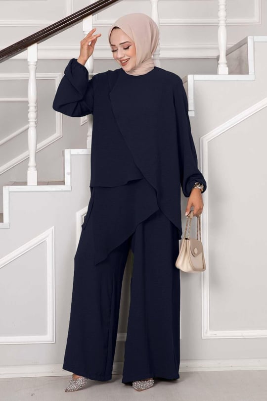 Ürün tunik ve pantolon olmak üzere iki parçadan oluşmaktadır. Tunik yakalıdır. Pantolon beli lastikli olup oldukça rahat bir takımdır.