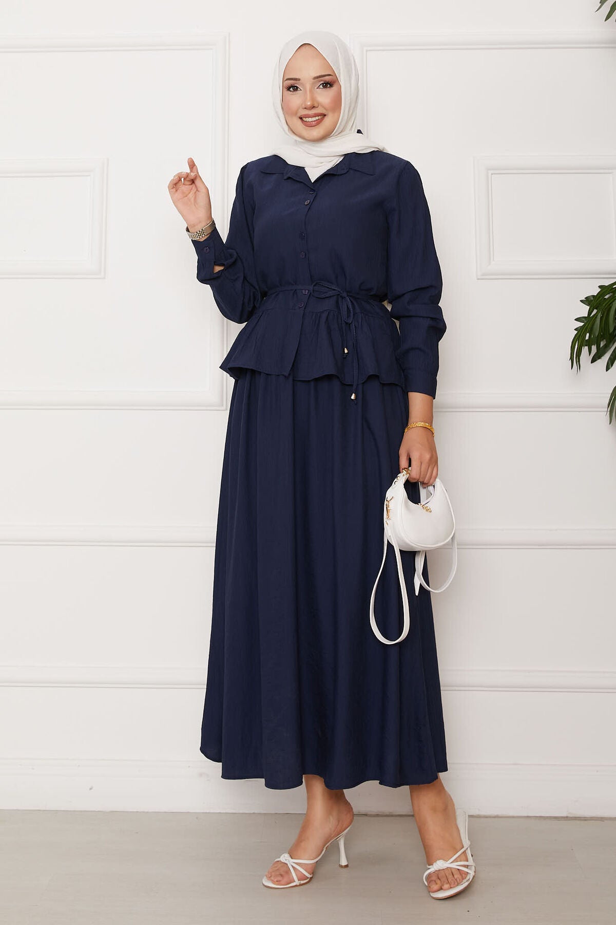 Beli Bağcık Detaylı Etekli İkili Takım Lacivert