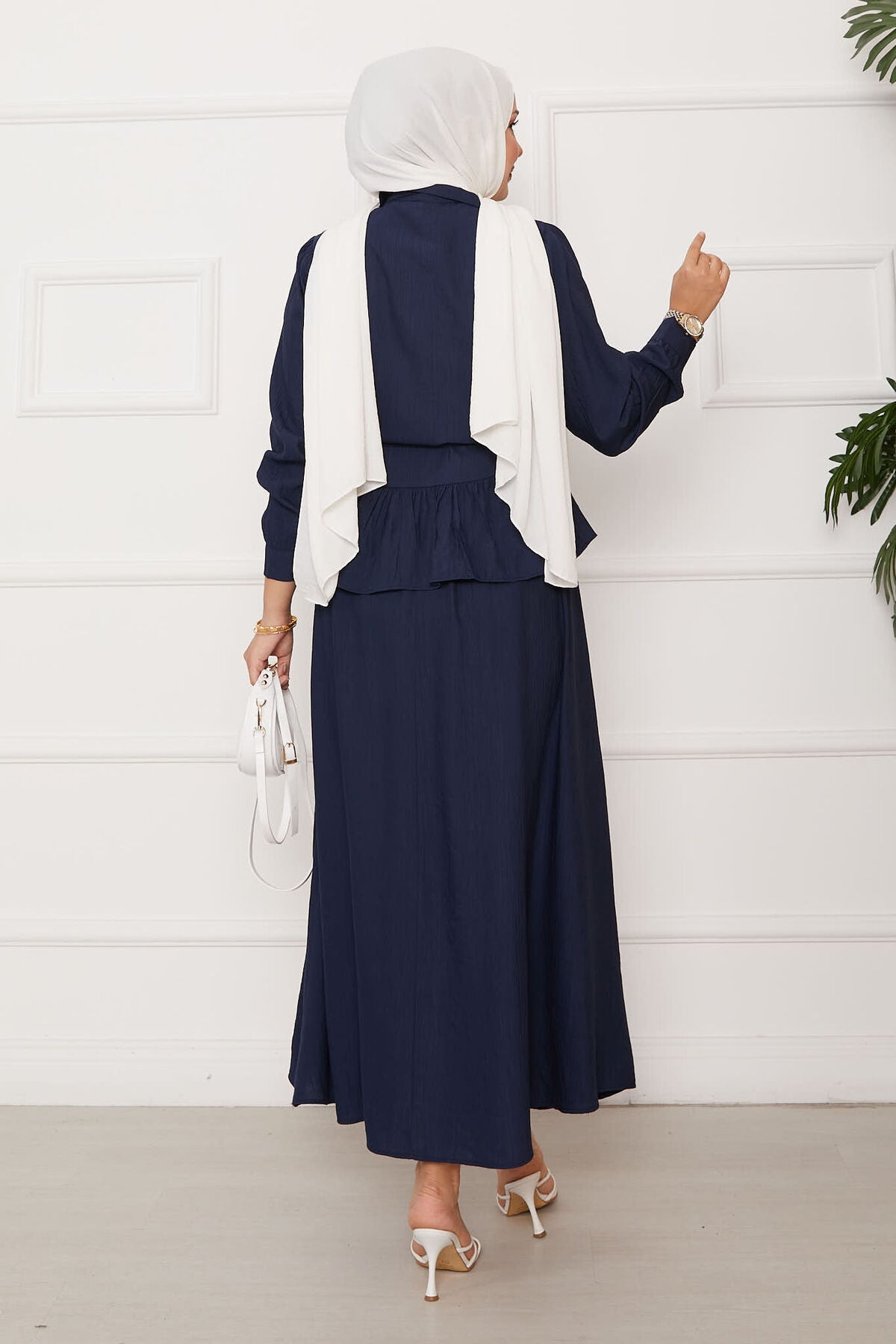 Beli Bağcık Detaylı Etekli İkili Takım Lacivert