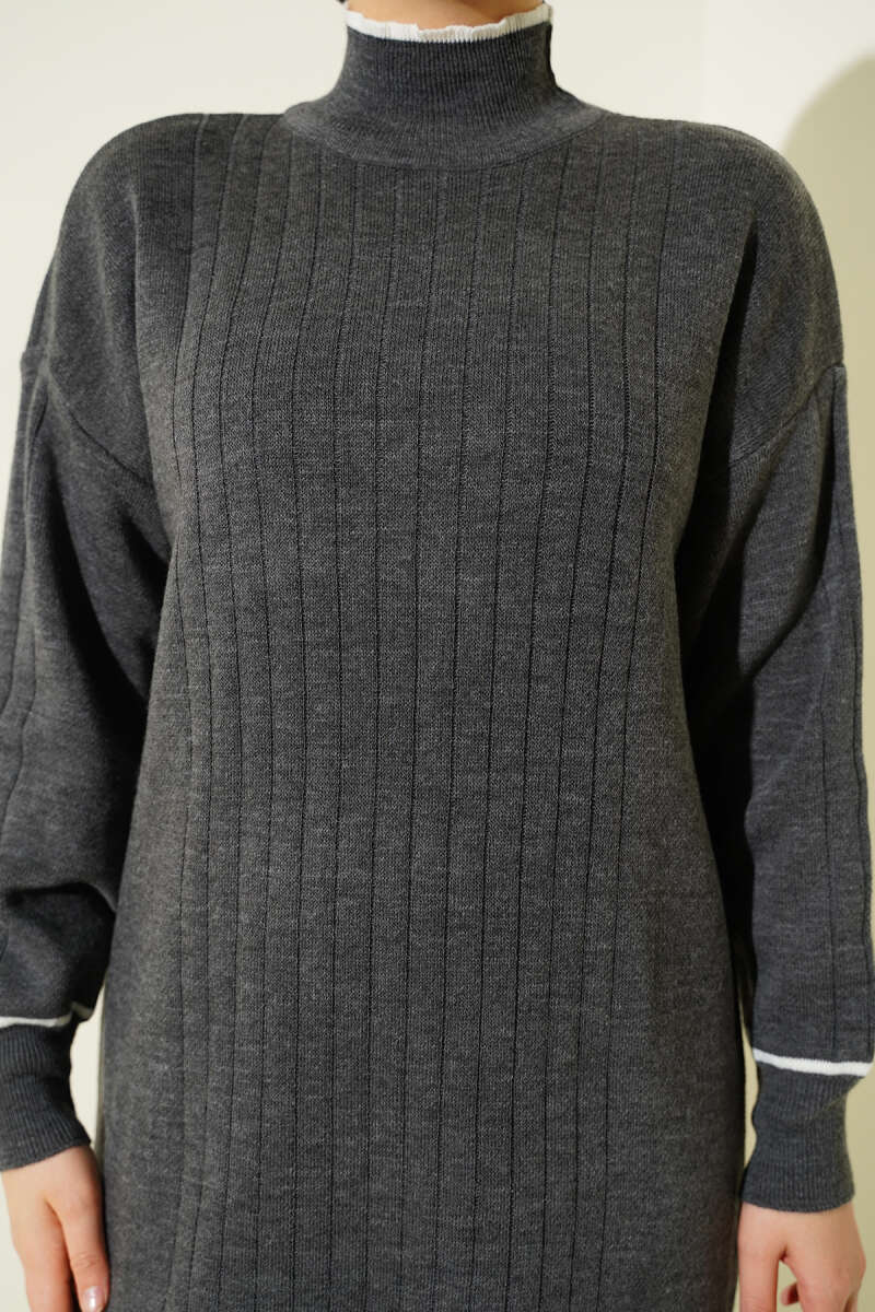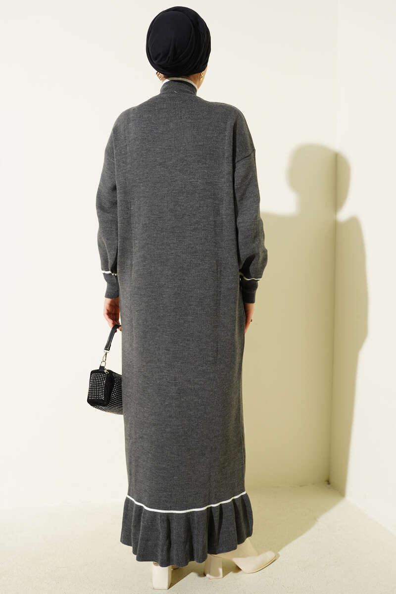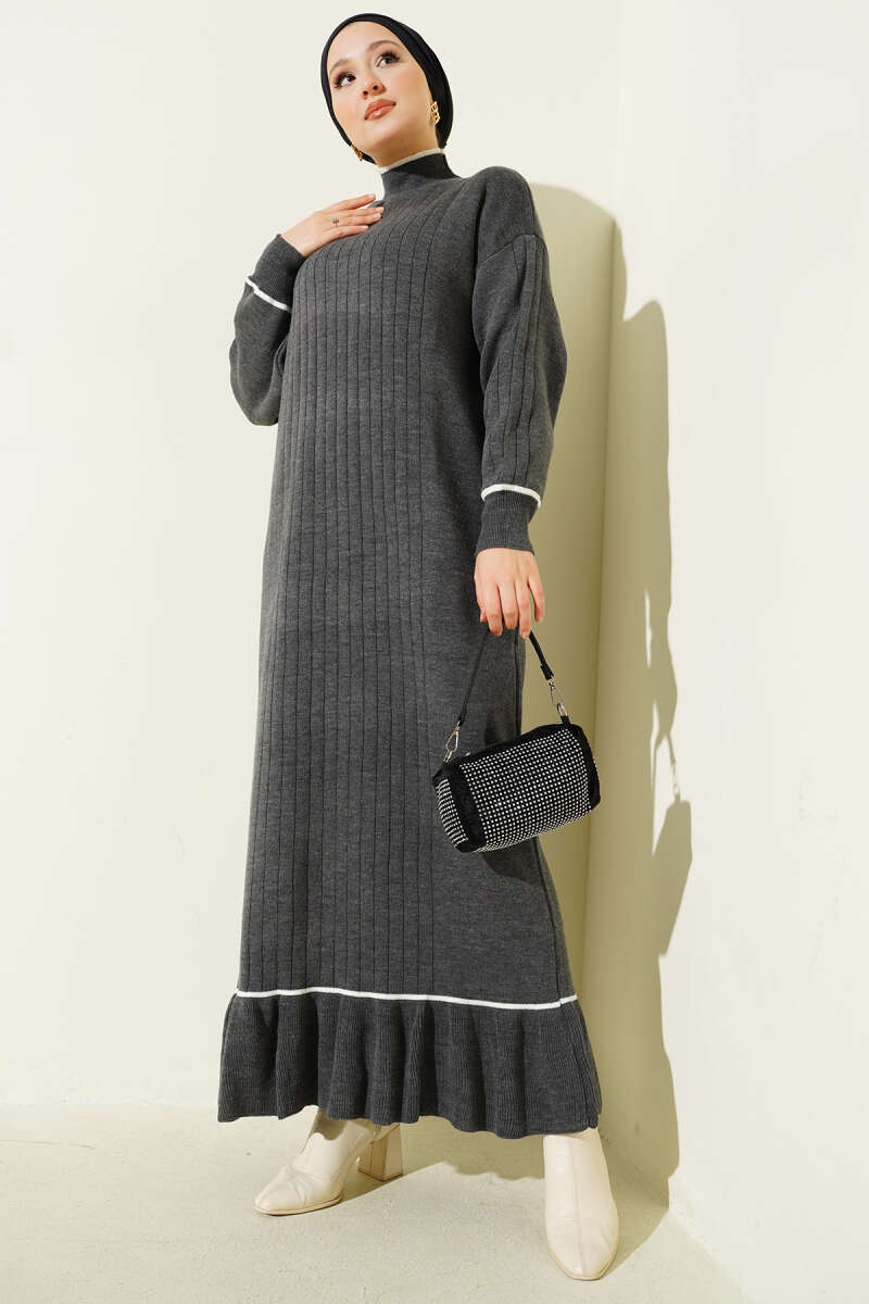 Etek Ucu Fırfır Detaylı Triko Elbise gri