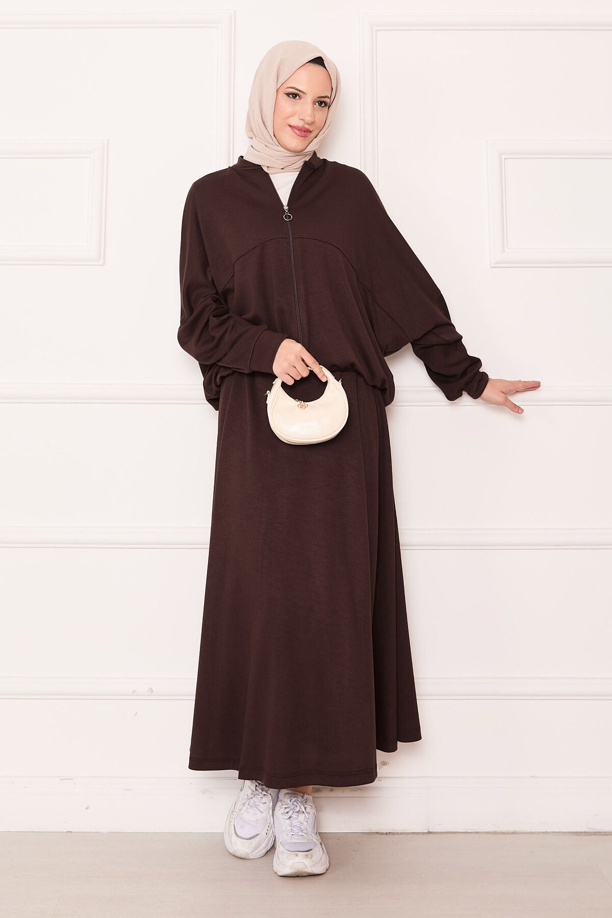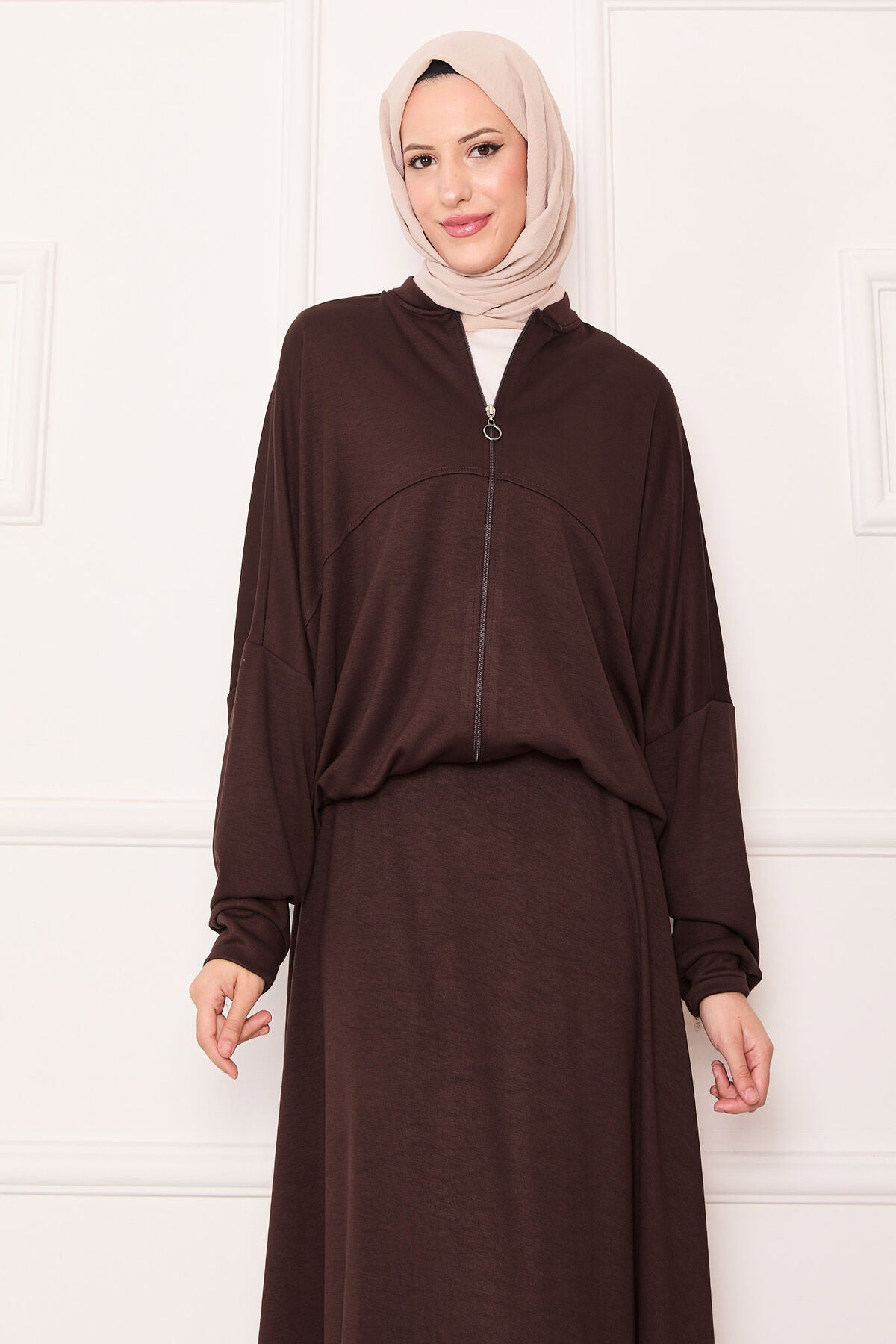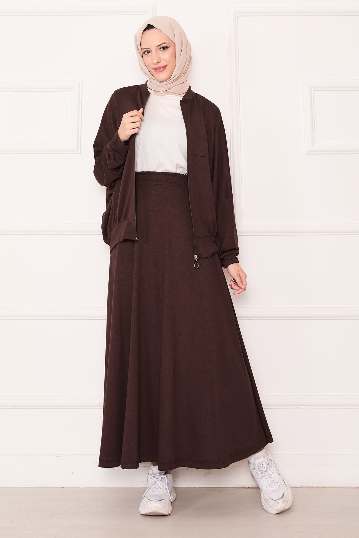 Fermuarlı Ceketli Etek Takım kahverengi