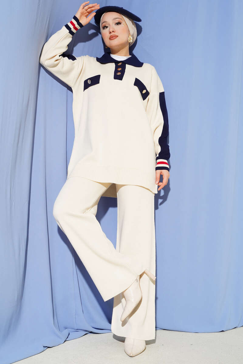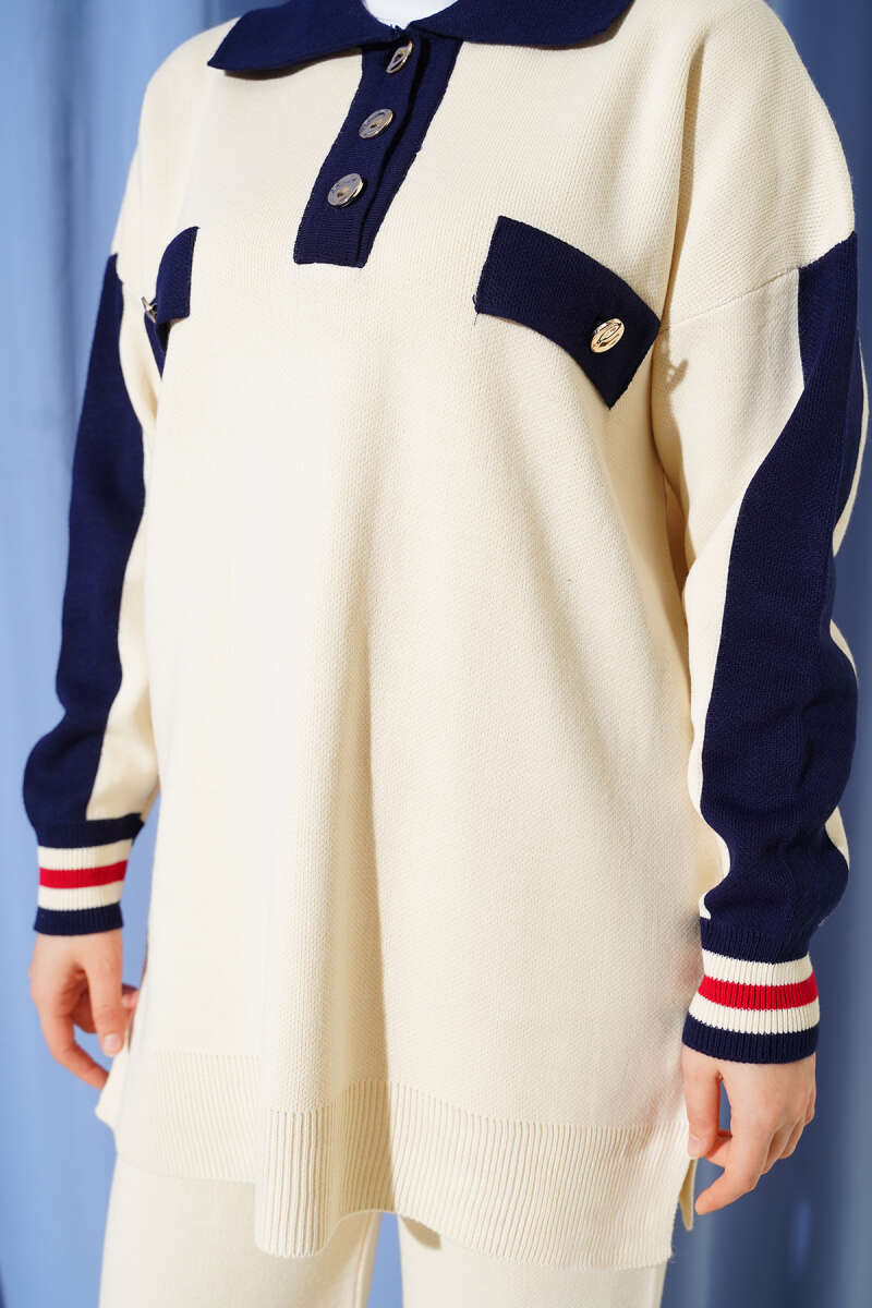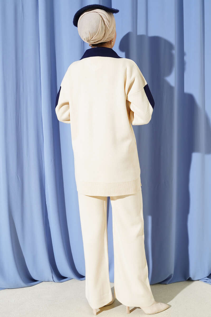 Gömlek Yaka Düğmeli Triko İkili Takım ekru