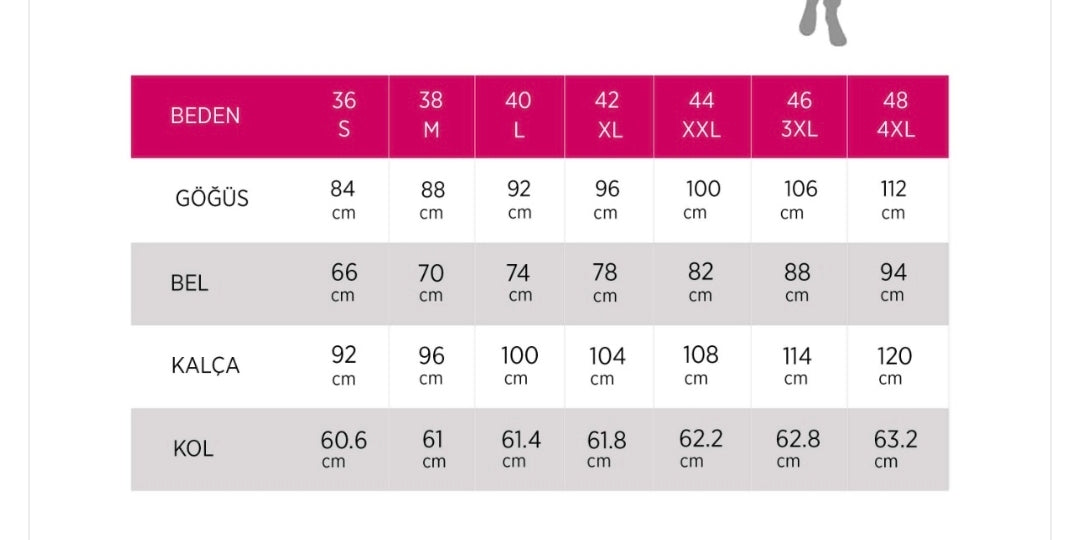 Uzunluk: 103cm 1-3 cm boy esnekliği olabilir
