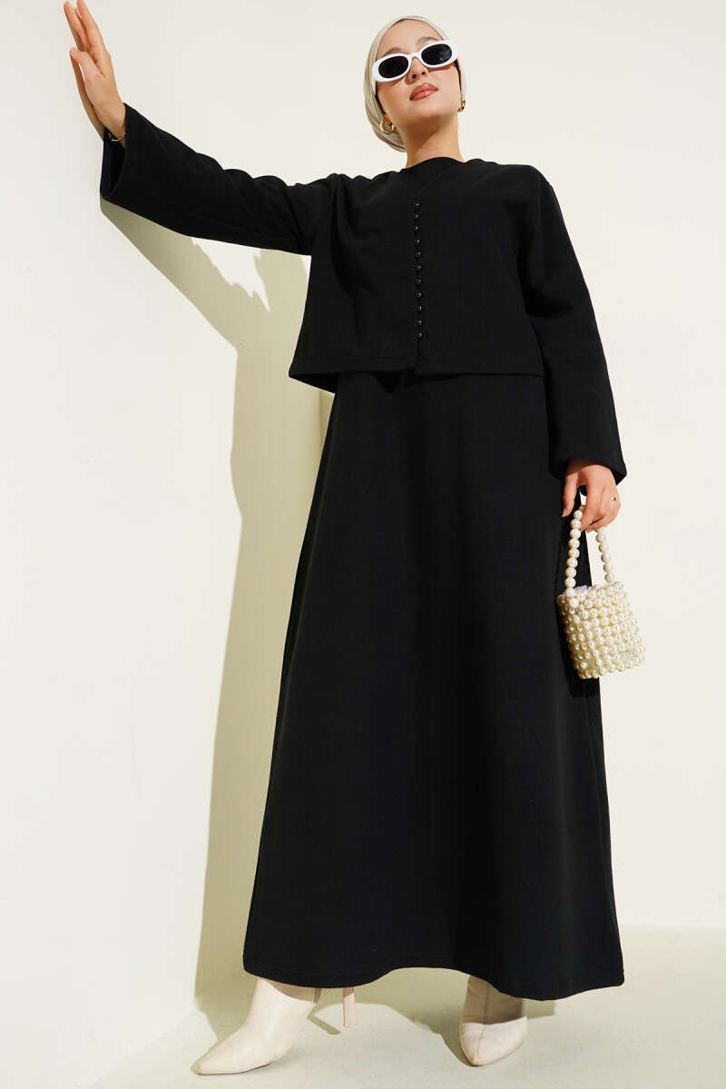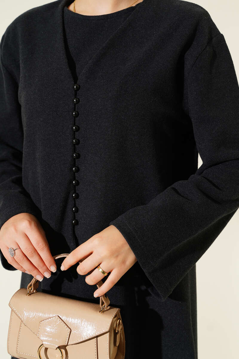 Mini Önü Düğmeli Elbise antrasit