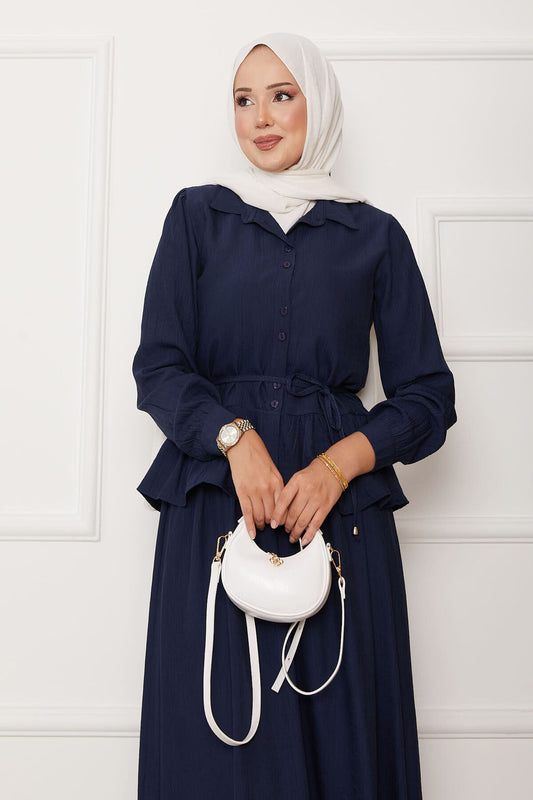 Beli Bağcık Detaylı Etekli İkili Takım Lacivert