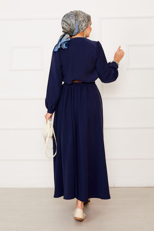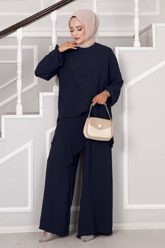 Eteği Pileli , İkili Tesettür Takım Lacivert