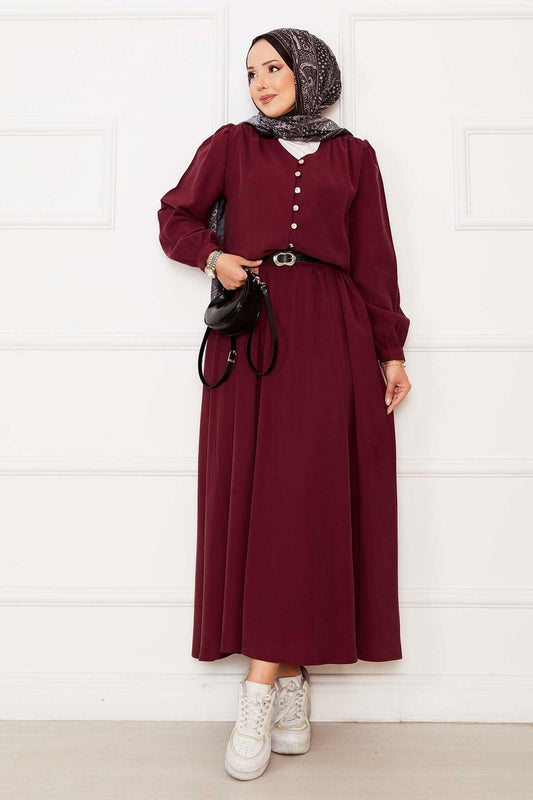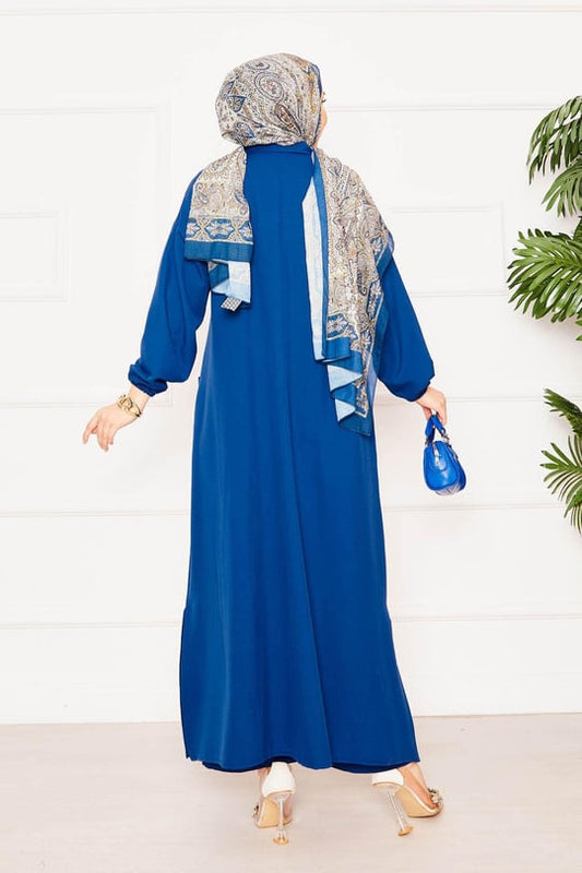Önü Yarım Fermuarlı, Rahat Kalıp Tesettür Takım saks