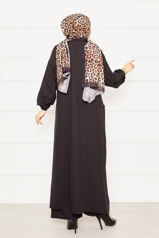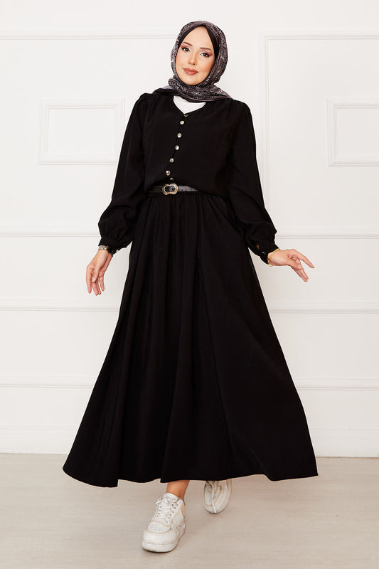 Eteği Pileli, İkili Tesettür Takım Siyah