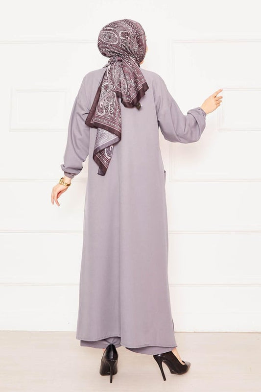 Önü Yarım Fermuarlı, Rahat Kalıp Tesettür Takım Gri