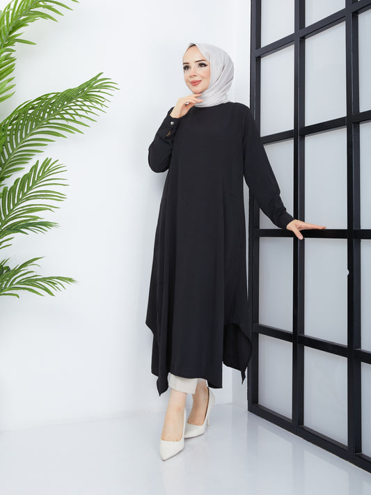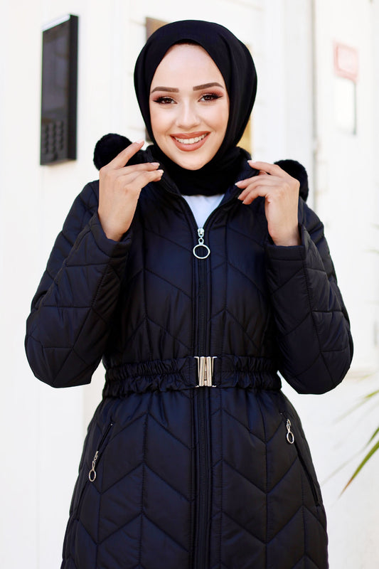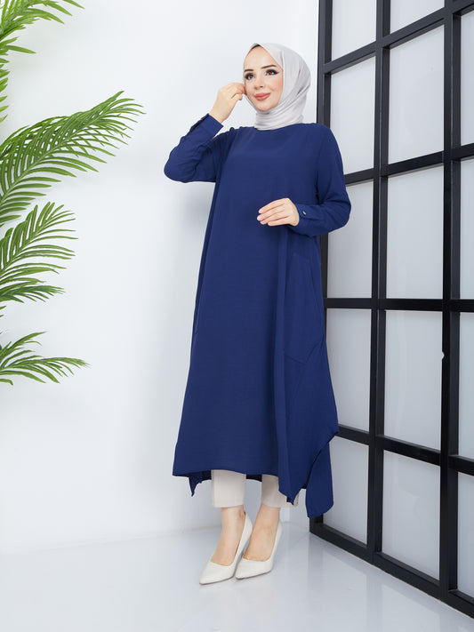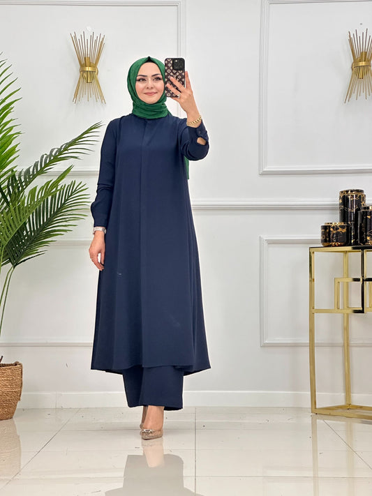 Abaya Hijab Décontractée avec Ceinture - Bleu Marine